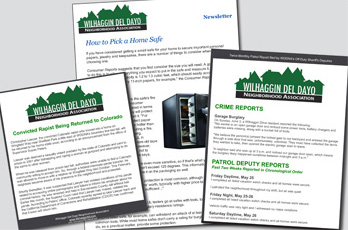 Each month we distribute an email newsletter to all members with valuable information about local security issues and to help you protect your home, your property and your family. In addition, twice each month, members receive a summary of the day-by-day reports filed by our patrol deputies. And when the need arises, we distribute special email alerts about immediate security concerns. Join WWDNA to receive the monthly newsletter and patrol reports.